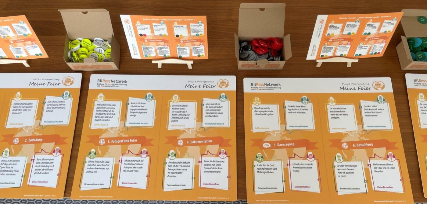 Bereits die erste Fassung des BilRess-Lernspiels vermittelt die Komplexität der Bewertung einzelner Alltagsprodukte hinsichtlich ihres Ressourcenbedarfs und -verbrauchs. Das zweite Lernspiel „Meine Party – Meine Verantwortung“ erfasst die Zusammenhänge anhand des Beispiels von Veranstaltungsplanungen.