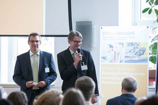 Dr. Michael Scharp und Prof. Holger Rohn, Institut für Zukunftsstudien und Technologiebewertung (IZT), begrüßten die insgesamt 84 Teilnehmenden, Aussteller und Referenten*innen. Sie dankten allen, die es möglich gemacht hatten, die Konferenz auszurichten. In Ihrem Statement wiesen sie darauf hin, dass sich das BilRess-Netzwerk mit einer Mitgliederzahl von 380 deutlich positiv entwickelt habe. Eine Vielzahl von Anfragen zur Präsentation der Ideen, der Lernmaterialien von LehrRess oder auch nur zur Thematik Ressourcenschonung und Ressourceneffizienz erreicht das BilRess-Netzwerk. Deshalb sieht das BilRess-Team der BilRess-Zukunft im Rahmen von Progress III auch sehr positiv entgegen.
