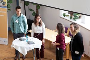 Julia Schindler, selbst Absolventin der Hochschule Pforzheim und inzwischen als wissenschaftliche Mitarbeiterin tätig, sowie drei Studierende der Hochschule berichteten von ihren Erfahrungen mit der Möglichkeit “Ressourceneffizienz und Nachhaltigkeit” zu studieren. Der Bachelorstudiengang Ressourceneffizienz-Management ist an der Fakultät für Wirtschaft und Recht angesiedelt. Die Business School bietet mit Life Cycle & Sustainability den passenden Master. Beide Studiengänge sind im Wirtschaftsbereich angesiedelt, bieten aber die Möglichkeit interdisziplinär und praxisnah zu studieren. Die Studierenden stellten die verschiedenen Phasen des Studiums sowie Schwerpunkte vor.